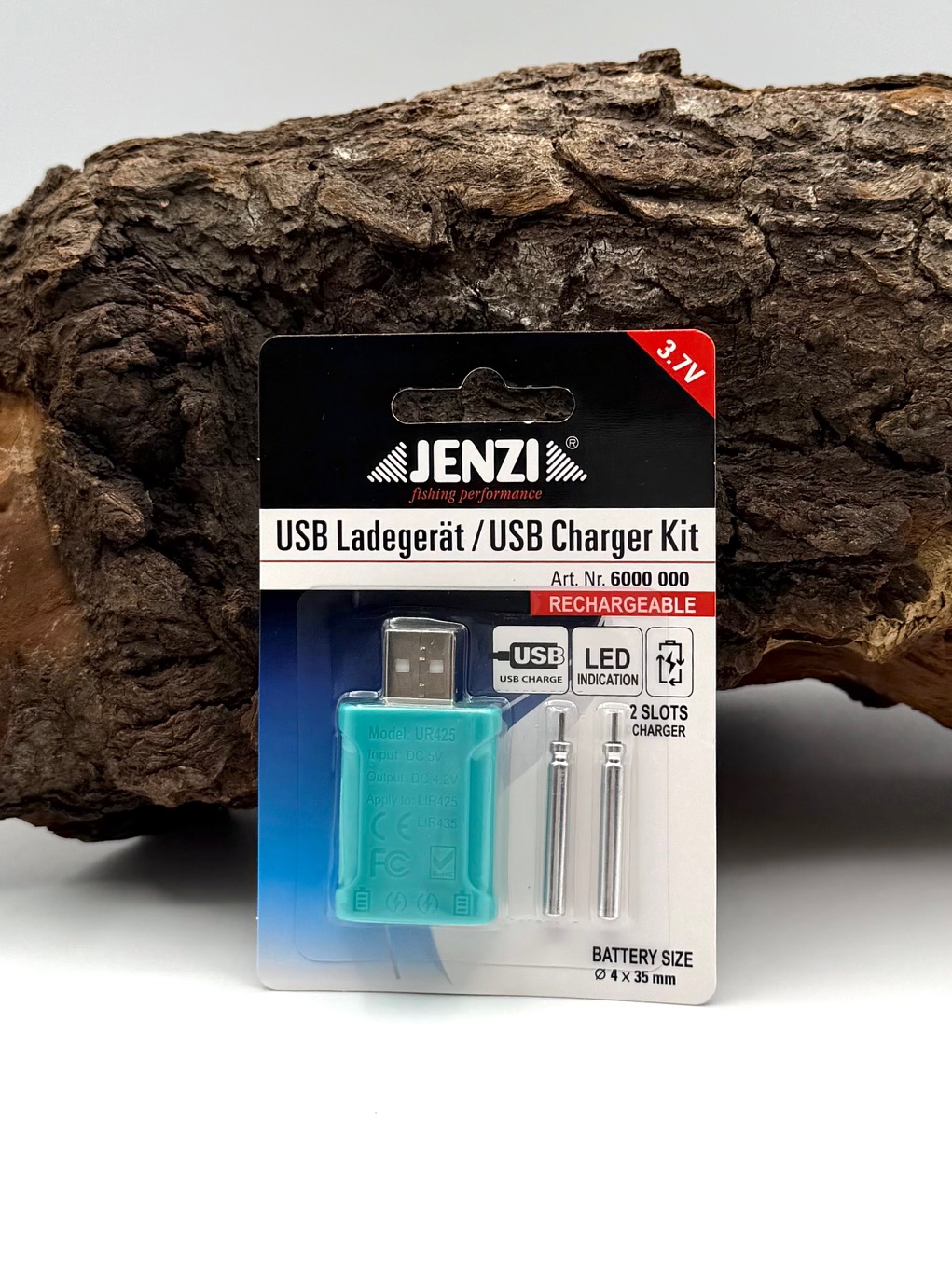 Jenzi USB Ladegerät inkl. 2 Stabbatterien LIR 425 3,7V Wiederaufladbar