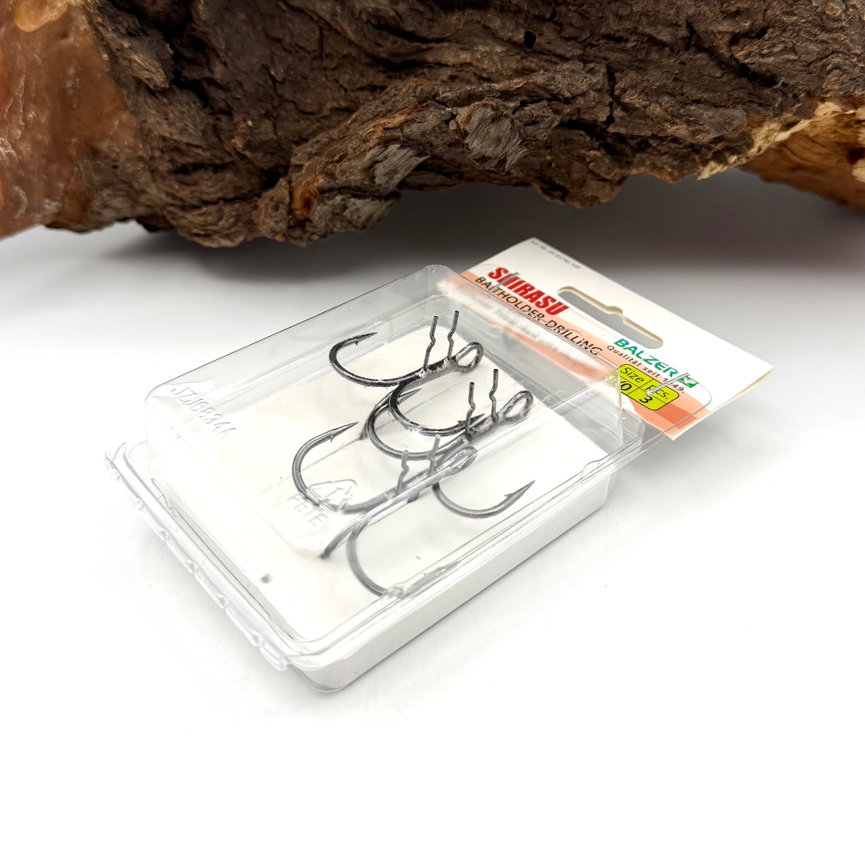 Der Balzer Shirasu Spezial Baitholder Drilling wurde speziell für Gummiköder und Köderfische entwickelt, die sicher fixiert werden müssen – ideal für Hecht, Zander und große Barsche. Die beiden seitlichen Baitholder-Streben werden einfach in den Köderkörper gedrückt und sorgen dafür, dass der Drilling bombenfest sitzt, ohne zu verrutschen.