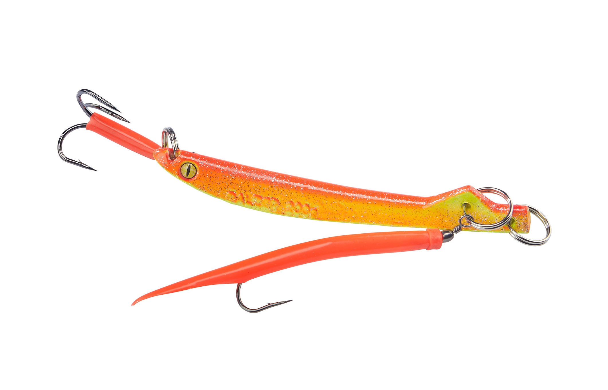 Dieser Pilker hat eine Bananenform, für extrem taumelnde Aktionen. Er ist in sechs attraktiven Farben erhältlich, alle mit einzigartigen Reptilienaugen, was die Aufmerksamkeit der Fische auf sich zieht und ihre Neugier weckt. Die Kombination aus den unterschiedlichen Farben und der auffälligen Augen-Gestaltung simuliert das Erscheinungsbild von Beute, bietet Zusatzreize und maximiert so die Bissfrequenz.