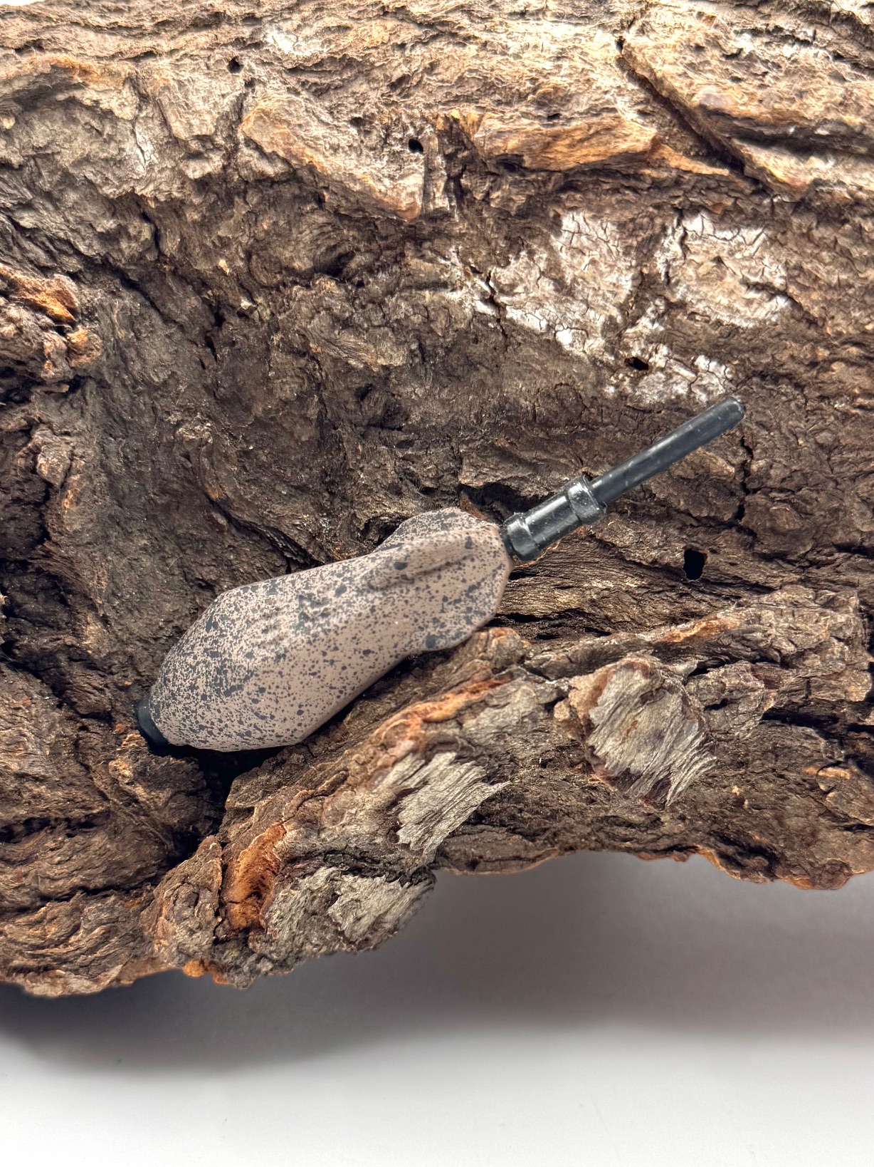 Die aerodynamische Form des Inline-Teardrops wurde zusammen mit dem Rohr speziell entwickelt, um beim Werfen so wenig Widerstand wie möglich zu erzeugen. Wir haben die ovalen Flächen durch schärfere Formen ersetzt, um so viel Material wie möglich in die äußeren Abmessungen zu pressen und ein kompakteres Gewicht zu erreichen. Die Flügel an den Seiten stabilisieren den Teardrop im Flug, verlängern die Fluglinie und tragen zur Genauigkeit und Konsistenz Ihrer Würfe bei. Außerdem verhindert das Rohr, dass sich die Montage während des Fluges im Blei verheddert. Die Oberfläche des Gewichts ist durch eine Farbe in den natürlichen Brauntönen mit den schwarzen Flecken geschützt, die seine Anwesenheit auf dem Boden perfekt tarnt.