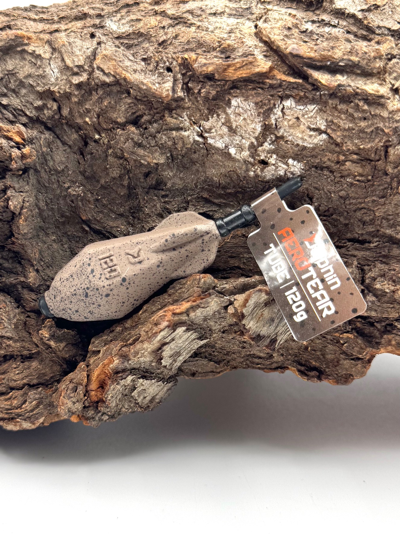 Die aerodynamische Form des Inline-Teardrops wurde zusammen mit dem Rohr speziell entwickelt, um beim Werfen so wenig Widerstand wie möglich zu erzeugen. Wir haben die ovalen Flächen durch schärfere Formen ersetzt, um so viel Material wie möglich in die äußeren Abmessungen zu pressen und ein kompakteres Gewicht zu erreichen. Die Flügel an den Seiten stabilisieren den Teardrop im Flug, verlängern die Fluglinie und tragen zur Genauigkeit und Konsistenz Ihrer Würfe bei. Außerdem verhindert das Rohr, dass sich die Montage während des Fluges im Blei verheddert. Die Oberfläche des Gewichts ist durch eine Farbe in den natürlichen Brauntönen mit den schwarzen Flecken geschützt, die seine Anwesenheit auf dem Boden perfekt tarnt.