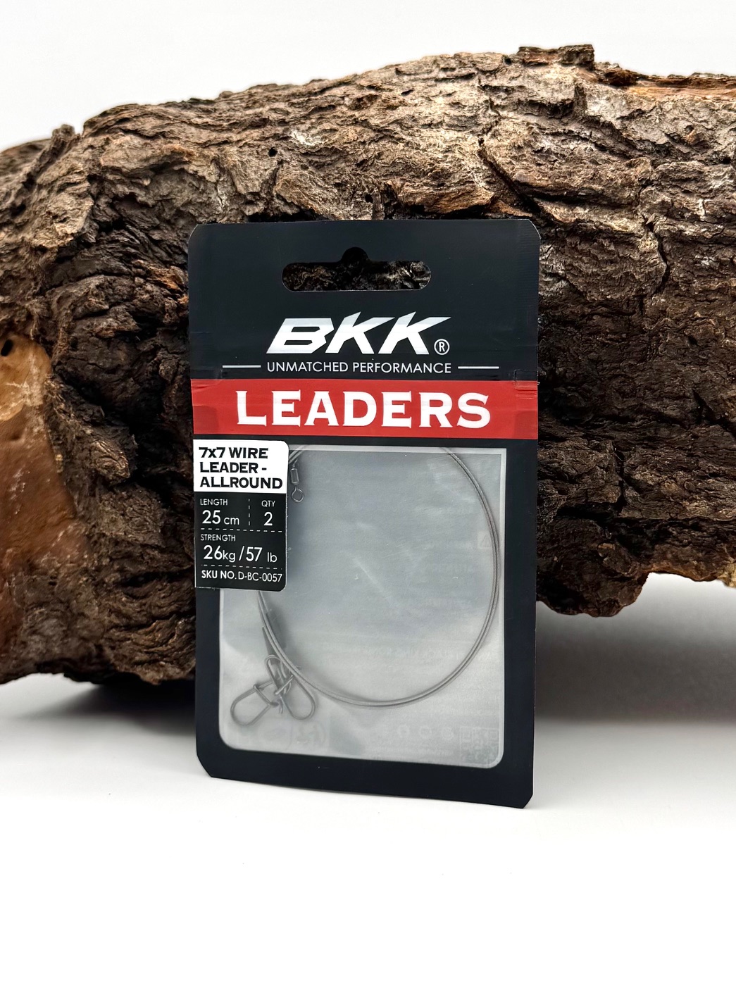 Die BKK 7x7 Wire Leader Allround sind hochwertige, fertig gebundene Stahlvorfächer für das Raubfischangeln. Gefertigt aus japanischem 7x7 Edelstahl-Wire bieten sie eine perfekte Kombination aus Geschmeidigkeit und extremer Stärke.