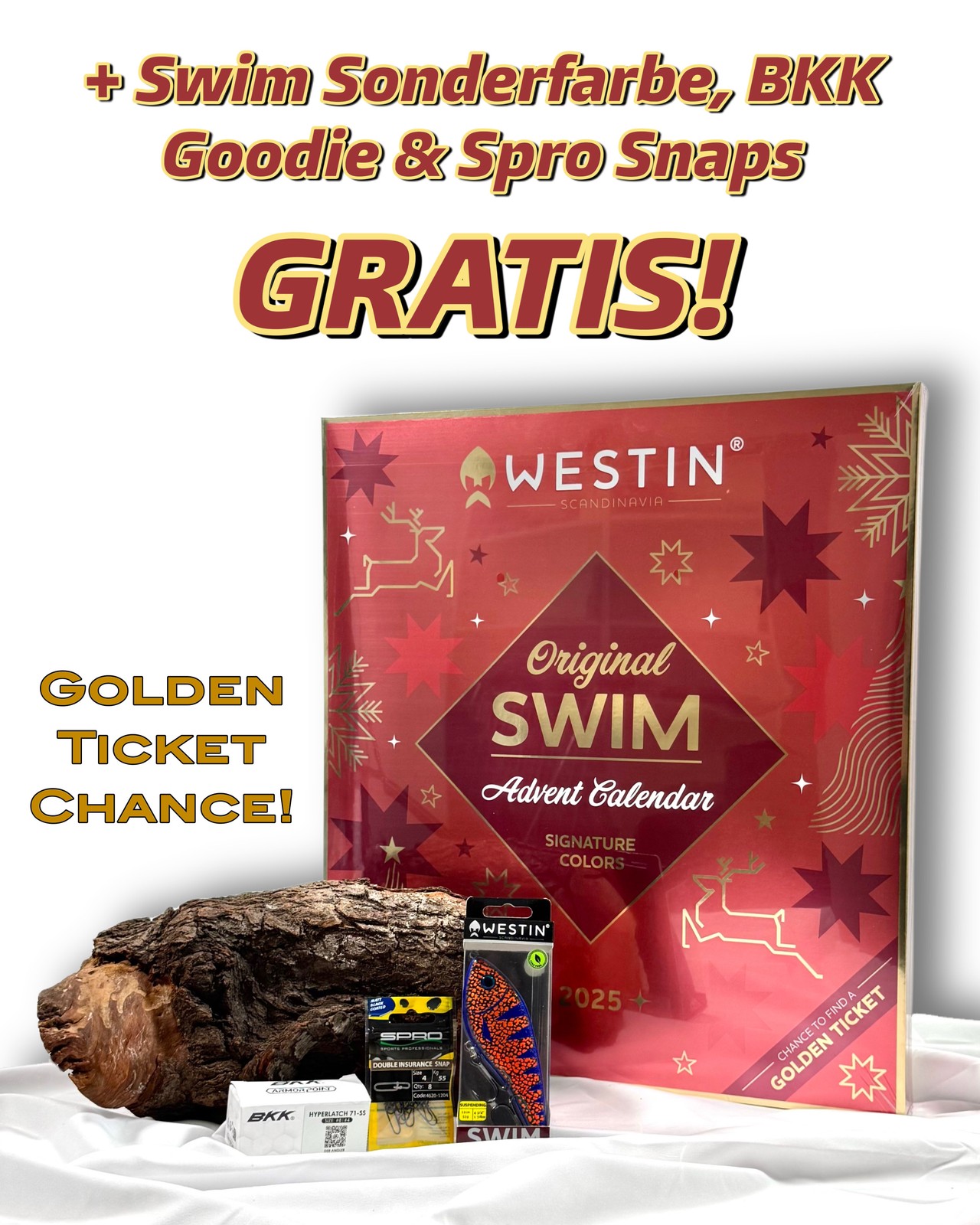 Die ultimative Kollektion des weltberühmten "Original" Westin Swim, handverlesen von unserem Team aus erfahrenen Anglern. 24 fängige Swim in "Signature" Farben, die nur in unseren Adventskalendern erhältlich sind, machen dieses Produkt zu einem Muss für jeden überzeugten Raubfischangler. Mit dieser einzigartigen Kollektion legendärer Köder ist jeder Tag ein Swim-Tag.