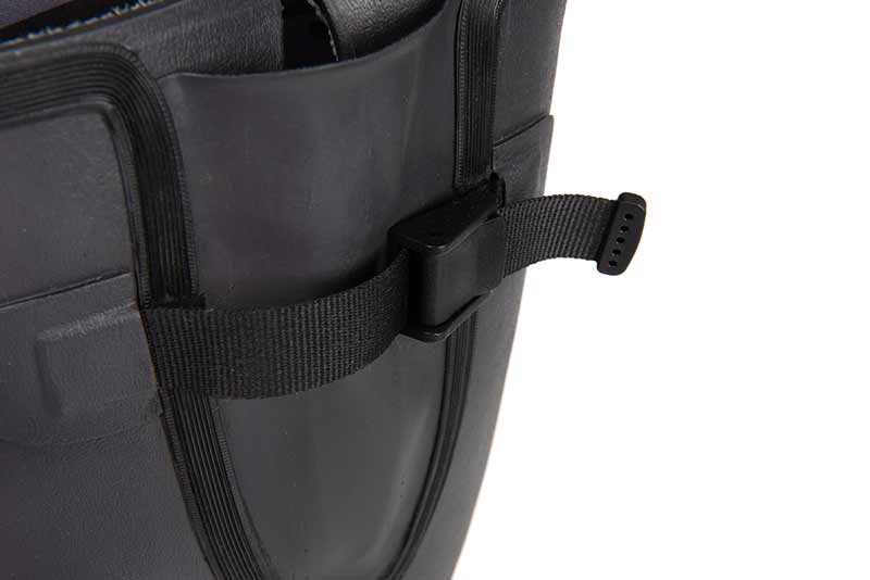 Der verstellbare Riemen mit Schnalle sorgt für einen sicheren Sitz, während der wasserdichte Einsatz effektiv das Eindringen von Feuchtigkeit verhindert. Die strapazierfähige, aber flexible Konstruktion ermöglicht volle Bewegungsfreiheit, selbst bei langen Sessions am Wasser.