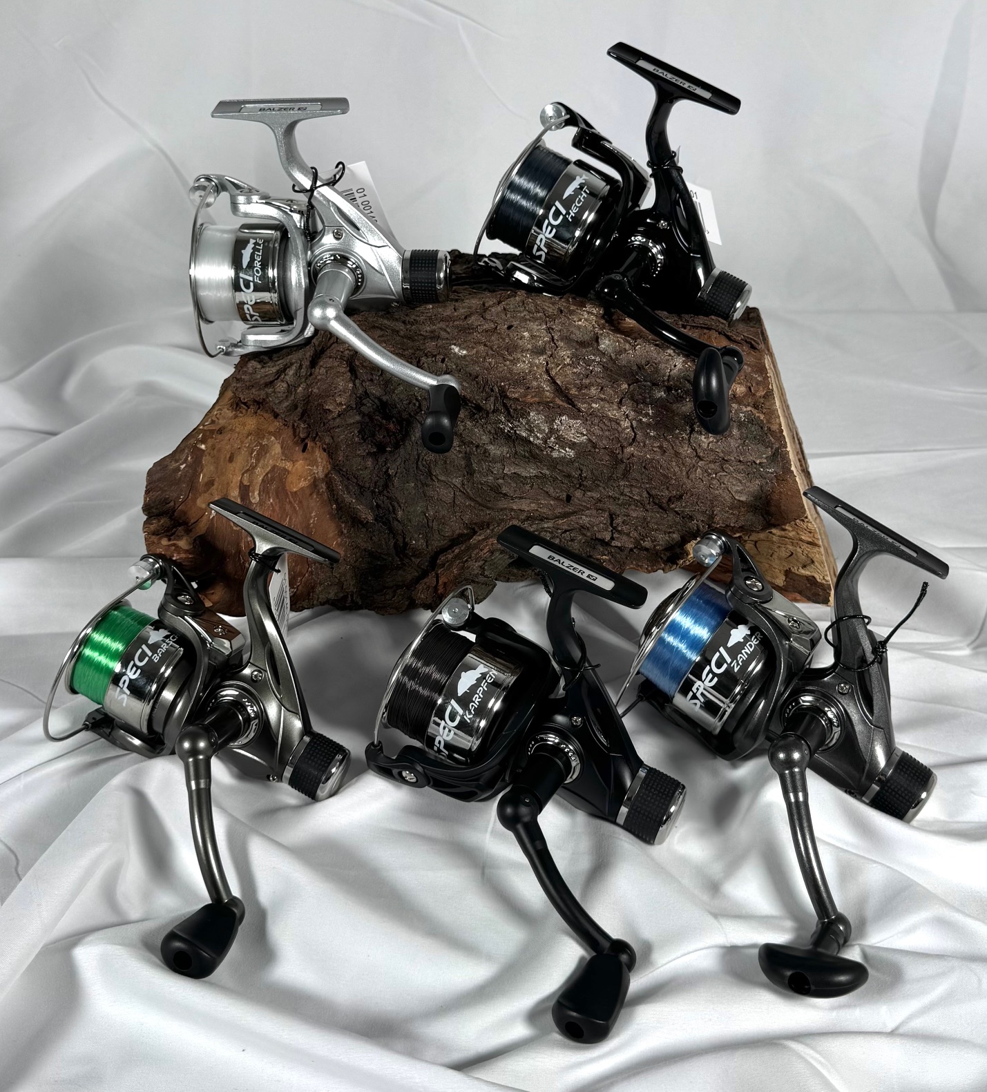Mit den Balzer Spezi 1000 Zielfischrollen bist du sofort einsatzbereit: Jede Rolle ist bereits mit einer monofilen Qualitätsschnur bespult, deren Farbe und Durchmesser exakt auf den jeweiligen Zielfisch abgestimmt sind – Barsch, Forelle, Zander, Hecht oder Karpfen.