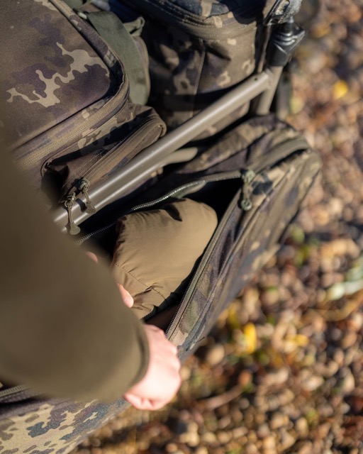 Die üppige Länge bietet jede Menge Platz für längere oder sperrige Gegenstände, während drei verstärkte Lochöffnungen die Verwendung von Side Bar Straps ermöglichen, um die Tasche individuell und sicher zu befestigen. Ideal für die Verwendung mit den Carp Porter Bungees.