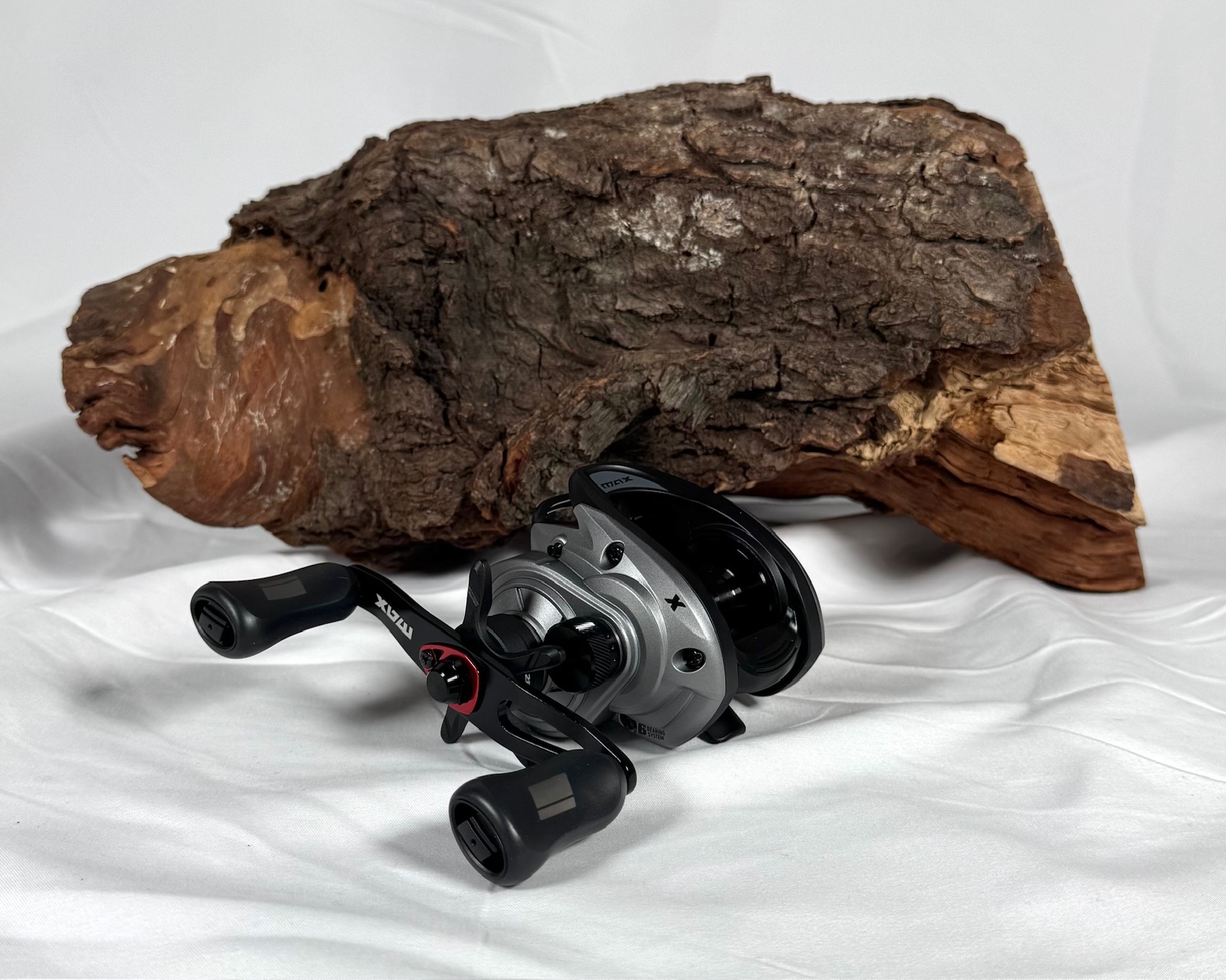 Das neue A-Sym Frame Design sorgt für eine kompaktere, ergonomischere Form, während das robuste Duragear™ Messinggetriebe und das geschmeidige 5+1 Kugellagersystem eine ruhige und kontrollierte Performance liefern. Mit der 6.8:1 High-Speed-Übersetzung, MagTrax™ Bremssystem und dem Power Disk™ Drag (15 lbs) ist die Max X ideal für Softbaits, Crankbaits, Spinnerbaits und vielseitige Spinntechniken.