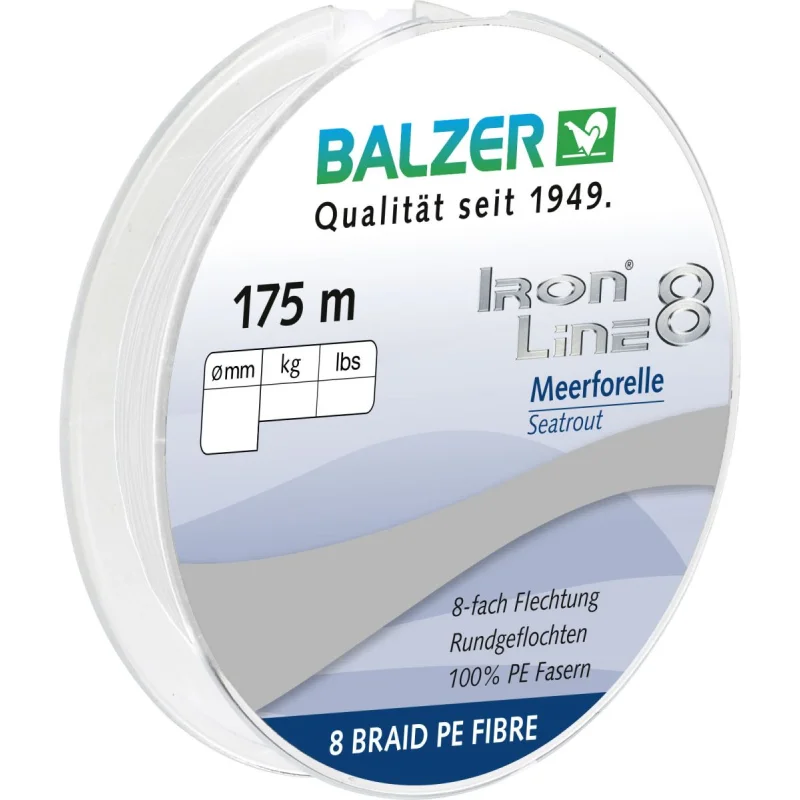 Die Balzer Ironline 8x Seatrout ist eine hochpräzise 8-fach rundgeflochtene Schnur, perfekt abgestimmt für das Meerforellenangeln an der Ostsee. Der Name Ironline® steht seit Jahren für höchste Qualität – und diese Version setzt die Tradition konsequent fort: leise, weich, extrem tragfähig und hervorragend sichtbar bzw. eben nicht sichtbar für den Fisch.