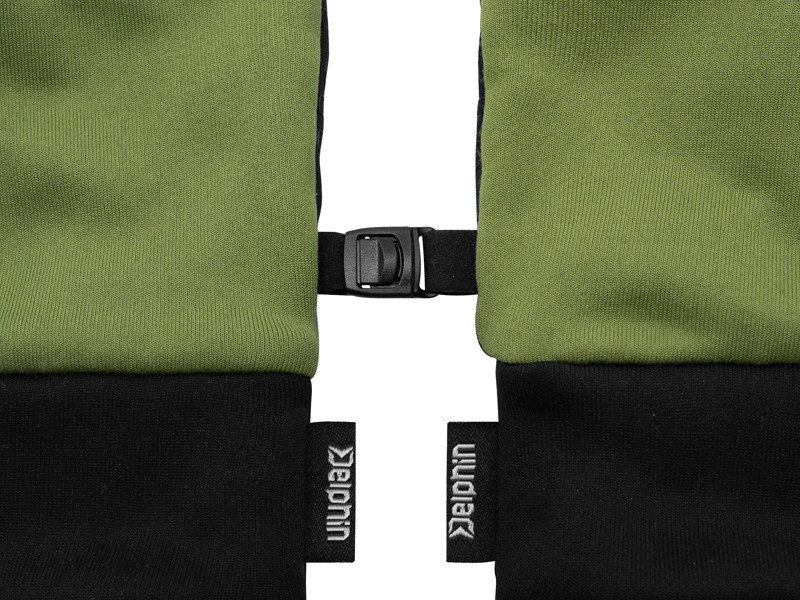Beide Handflächen besitzen eine gummierte, magnetähnliche Beschichtung, die für enormen Grip sorgt – selbst bei Nässe. Die Oberseite der Handschuhe ist flexibel und glatt, während die innere Fleece-Schicht für Wärme, Komfort und ein weiches Tragegefühl sorgt. Für zusätzlichen Schutz im Winter ist der Bereich am Handgelenk mit doppellagigem Gewebe verstärkt, das Kältebrücken verhindert und die Handschuhe eng am Handgelenk anliegen lässt. Das Farbdesign in Grün mit auffälligen Grafiken kombiniert mit Schwarz sieht nicht nur hochwertig aus, sondern ist auch perfekt auf moderne Outdoor- und Angelbekleidung abgestimmt. Damit die Handschuhe unterwegs nicht verloren gehen, lassen sie sich über einen praktischen Kunststoffclip miteinander verbinden – ideal zum Verstauen in der Tasche, wenn du sie gerade nicht trägst.