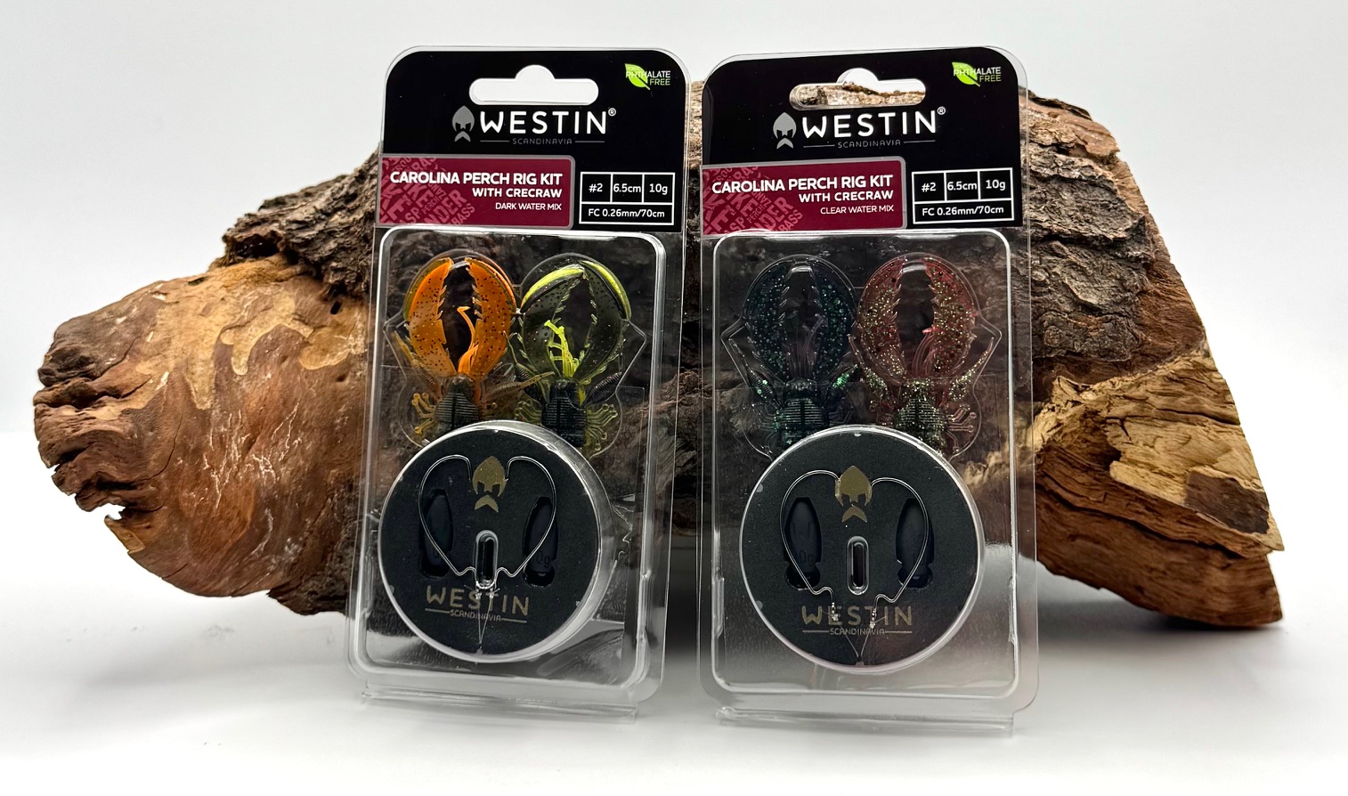 Zum Einsatz kommen bewährte Bullet Weights, ultra scharfe Offset EWG-Haken, UV-aktive Kunststoffperlen sowie hochwertige Fluorocarbon-Vorfächer aus der W6 ST3 FC Serie. Als Köder sind zwei Westin CreCraw 6,5 cm dabei, der beim Carolina Rig besonders natürlich und verführerisch über Grund präsentiert wird. Die Rigs werden übersichtlich auf einer wiederverwendbaren EVA-Spule geliefert, was Transport, Lagerung und schnellen Wechsel am Wasser deutlich erleichtert. Zwei Farbvarianten – Clear Water Mix und Dark Water Mix – decken unterschiedliche Wassertrübungen und Lichtverhältnisse ab.