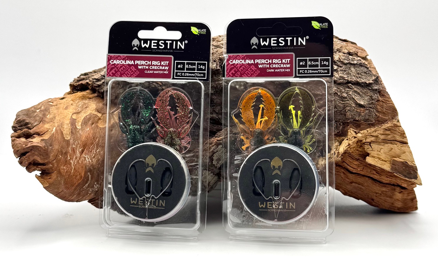 Zum Einsatz kommen bewährte Bullet Weights, ultra scharfe Offset EWG-Haken, UV-aktive Kunststoffperlen sowie hochwertige Fluorocarbon-Vorfächer aus der W6 ST3 FC Serie. Als Köder sind zwei Westin CreCraw 6,5 cm dabei, der beim Carolina Rig besonders natürlich und verführerisch über Grund präsentiert wird. Die Rigs werden übersichtlich auf einer wiederverwendbaren EVA-Spule geliefert, was Transport, Lagerung und schnellen Wechsel am Wasser deutlich erleichtert. Zwei Farbvarianten – Clear Water Mix und Dark Water Mix – decken unterschiedliche Wassertrübungen und Lichtverhältnisse ab.