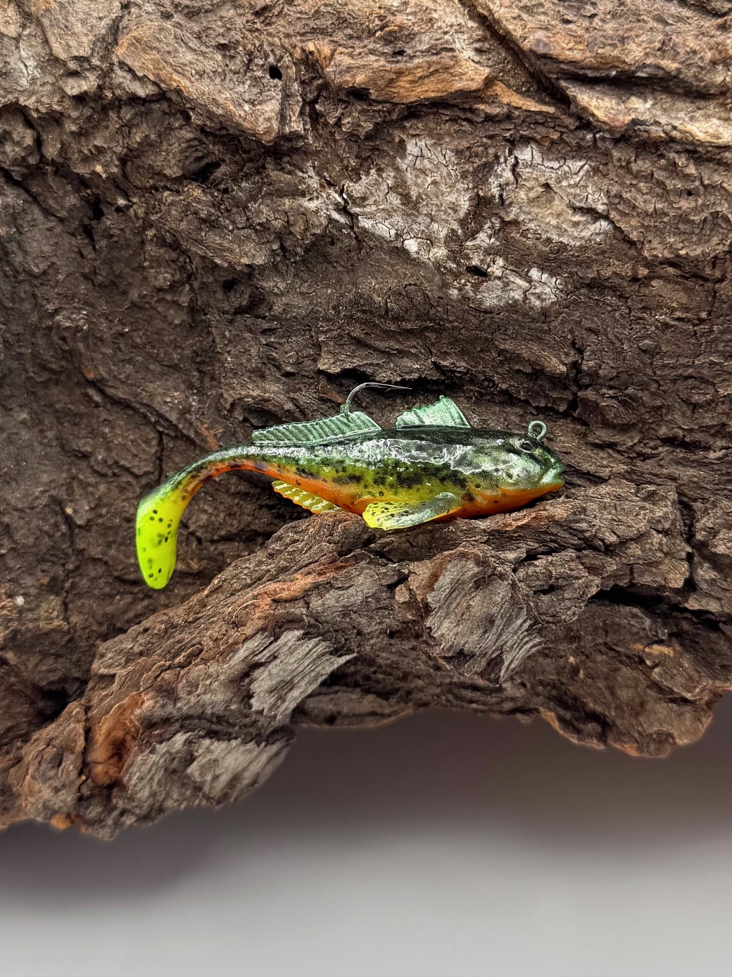 Die R2F-Version (Ready to Fish) ist sofort einsatzbereit und speziell für das langsame Jiggen mit kurzen, schnellen Starts am Grund entwickelt. Das bleifreie Stand-Up-Geschirr sorgt dafür, dass der Köder nach jedem Kontakt sauber auf den superflexiblen Brustflossen landet – exakt wie eine echte Grundel. Der ultrascharfe Haken ist dezent im Rückenbereich positioniert und wird zusätzlich durch die Rückenflosse geschützt, was eine hängerarme Präsentation zwischen Steinen und Strukturen ermöglicht. Der schnell arbeitende Hammer-Schwanz erzeugt eine markante, aber natürliche Aktion, während der fette Körper eine stabile Wackelbewegung liefert. Dank fotorealistischem Druck und handgemalten Details überzeugt Gunnar The Goby nicht nur optisch, sondern auch durch sein authentisches Laufverhalten.