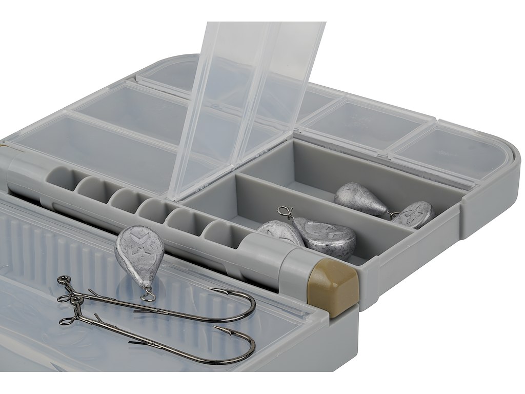 Herzstück des Systems sind die Switch-Rig-Haken mit der einzigartigen Switch-Öse, an der sich Gewichte blitzschnell montieren oder wechseln lassen. So kannst du Strömung, Tiefe, Drift oder Wind direkt am Wasser ausgleichen, ohne das Setup neu binden zu müssen. Das frei bewegliche Switchweight sorgt dabei für eine natürliche, kontrollierte Köderpräsentation dicht über dem Grund. Die dünndrahtigen, ultrascharfen Haken mit Black-Nickel-Beschichtung bieten eine zuverlässige Penetration, während das Keeper-System am Schaft Softbaits sicher fixiert und Köderschäden reduziert. Die Box ist ideal für Ned-Worms, Craws, Creaturebaits und viele weitere Softbaits – egal ob beim grundnahen Jiggen oder variablen Präsentationen.