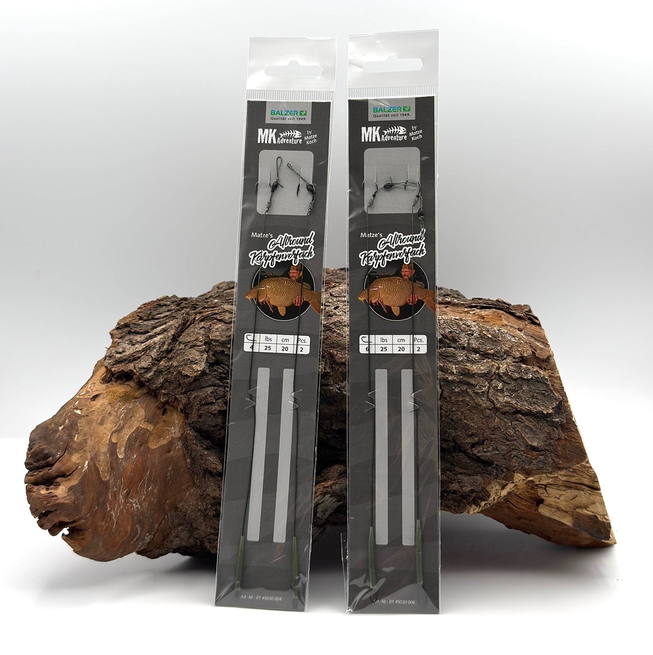 Das MK Allround Karpfenvorfach von Balzer steht für ein Prinzip, das sich unzählige Male bewährt hat: Einfach fängt oft am besten. Genau deshalb setzt dieses Rig auf eine unkomplizierte, saubere Konstruktion, die zuverlässig funktioniert – ohne unnötige Spielereien. Wie Matze Koch in vielen seiner Filme zeigt, ist der Allrounder mit dieser Montage bestens bedient.