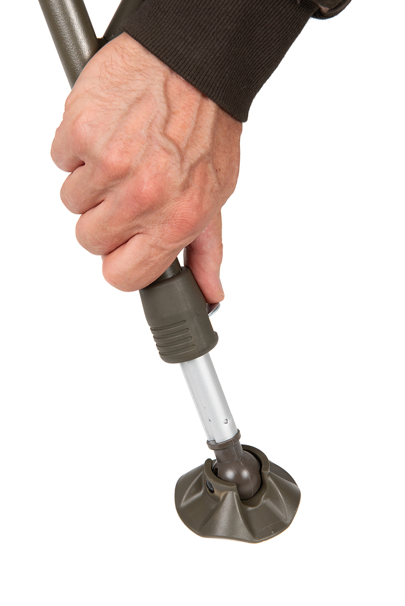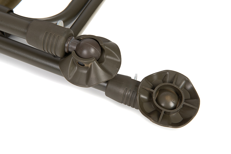 Die Kombination aus Khakigrün und Dunkelkhakigrün sorgt für ein dezentes, unauffälliges Design, das sich ideal in jede Umgebung am Wasser einfügt. Der gepolsterte Bezug und die komfortablen Armlehnen bieten auch bei längeren Ansitzen hohen Sitzkomfort. Dank der höhenverstellbaren Beine lässt sich der Stuhl optimal an unebenes Gelände anpassen. Die Kugelgelenk-Schlammfüße sorgen dabei für sicheren Stand – selbst auf weichem oder matschigem Untergrund. Durch sein klappbares Design ist der EOS Chair schnell verstaut und leicht zu transportieren – ideal für mobile Angler.